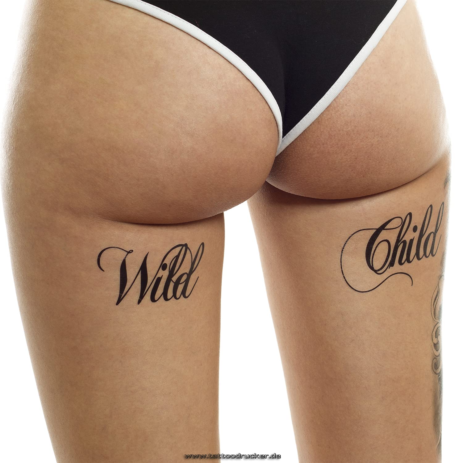 Tattoodrucker 1 X Wild Child Tattoo In Black Lettering In Large And Small Temporary Body Tattoo 1 Amazon De Beauty